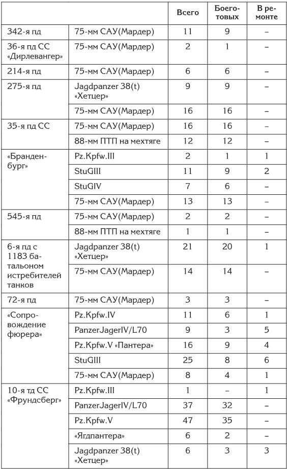 Одна самоходно-артиллерийская зенитная батарея 37-мм орудий из состава 6-го штурмового зенитно-артиллерийского полка. с) Боевая группа Ширмера