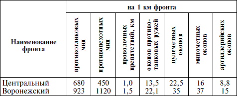 Плотность оборонительных сооружений в главной полосе обороны Центрального и Воронежского фронтов[633]