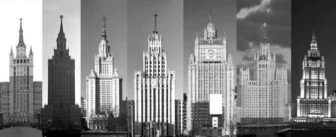 Высота московских зданий достигала 275 метров, и при низкой облачности они «скребли» небо и облака в прямом смысле слова, но это были не «небоскрёбы». Небоскрёбы Нью-Йорка — как самые первые, так и современные, восхищают блеском инженерных решений и технологий, но никак не архитектурой. Получается так потому, что появление небоскрёбов было вызвано необходимостью максимально использовать каждый квадратный фут дорогой земли в центре крупных городов, и идею небоскрёбов породило не творчество, а торгашество. Советские же «высотки» — это подчёркнутый простор. Задуманные как целостный ансамбль в масштабах огромного города, высотные здания создавали яркий образ послевоенной Москвы. Они стали не только её украшением, но и символом — достаточно вспомнить официальную эмблему Московской олимпиады 1980 года.