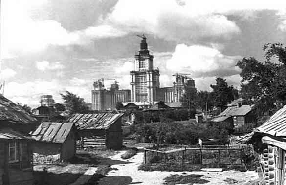 Строительство комплекса зданий МГУ имени М.В. Ломоносова развернулось в полную силу в конце 1948 года, и было закончено к 1 сентября 1953 года, когда новое здание впервые приняло студентов. Управлением строительства МГУ руководили опытнейший строитель Алексей Воронков и талантливый инженер Сергей Балашов, а генерал-полковнику-инженеру Алексею Комаровскому предписывалось курировать строительство МГУ и высотного административного здания в Зарядье. Инициатива такого назначения принадлежала Берии, знавшему Комаровского прекрасно и с лучшей стороны. С 1944 года генерал-майор Комаровский возглавил Главпромстрой НКВД-МВД СССР почти до конца 1951 года, когда был — тоже «с подачи» Берии, назначен начальником Главнефтеспецстроя МВД СССР. С 1945 года Комаровский параллельно находился в должности одного из заместителей «атомного» Первого ГУ при СМ СССР, много поработал под рукой Берии в Атомном проекте и именно за это в 1949 году получил звание Героя Социалистического Труда.