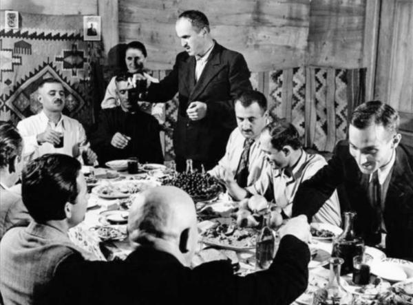 Как и все подобные приемы, ужин начался с официальных речей, но для грузинской натуры это было нестерпимо, и официоз моментально рассыпался. Грузины – люди не чопорные и не могут долго притворяться такими. Они начали петь, соло и хором, а потом и танцевать. Ходило по кругу вино. Капа станцевал своего любимого «казачка» – не очень грациозно, но замечательно уже то, что он вообще смог это сделать. Кто знает, может быть, сон придал нам второе дыхание, может быть, немного помогло вино, но мы легко пережили прием, который затянулся далеко за полночь. Я помню грузинского композитора, который поднял бокал, засмеялся и сказал: «К черту политику!» Я помню, как пытался станцевать грузинский танец с красивой женщиной, которая оказалась величайшей грузинской танцовщицей. Наконец, я помню, как все пели хором на улице, а милиционер, который подошел узнать, что происходит, присоединился к хору. Даже Хмарский немного повеселел. Он был таким же чужаком в Грузии, как и мы. На этом вечере рухнули языковые барьеры, разрушились национальные границы, и никому стали не нужны никакие переводчики.