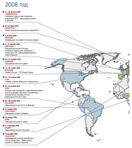 Зарубежные визиты Президеэнта РФ Дмитрия Медведева: после 8 августа 2008 года