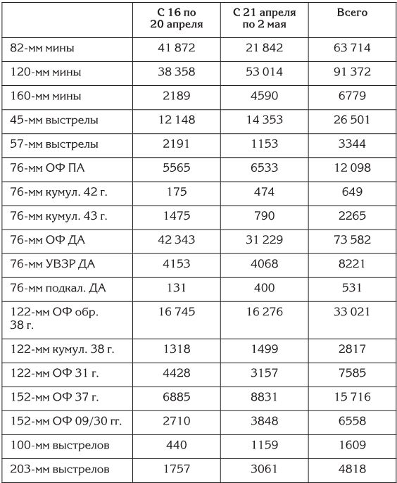 Расход боеприпасов войсками 5-й ударной армии с 16 апреля по 2 мая 1945 г.