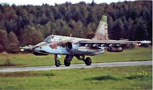 Бронированный одноместный дозвуковой фронтовой штурмовик. Предназначен для непосредственной поддержки войск на поле боя, штурмовки точечных объектов инфраструктуры противника в тылу. Принят на вооружение Советской армии в 1987 году и сегодня является основным штурмовиком российских ВВС. Штурмовик имеет опыт эксплуатации в Афганистане, Анголе, многочисленных конфликтах на Ближнем Востоке, ирано-иракской войне и др. На вооружении ВВС Грузии находились Су-25, модернизированные израильскими военными инженерами.