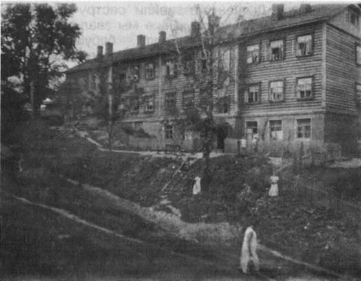 С 1924 года наша семья жила в доме барачного типа по Петропавловской улице (теперь ул. Кашена), рядом со смоленским вокзалом, который с улицей был соединен пешеходным мостом. Улица и место, где мы жили, были бойкие, густонаселенные: рядом переезд, пакгауз, бойня, спиртзавод, недалеко мастерская отца. Он, работая на железной дороге, вместе с братом изготовлял в мастерской титаны-кипятильники воды, которые отправлялись строителям железных дорог. Сталь и другие комплектующие поступали к нему в большом количестве, и вагонами отправлялась готовая продукция. Все делали сами, использовали простейшие машины.