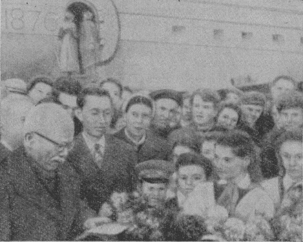 Активный участник восстания французских моряков в 1919 г. Тон Дык Тханг отвечает на приветствия трудящихся Одессы
