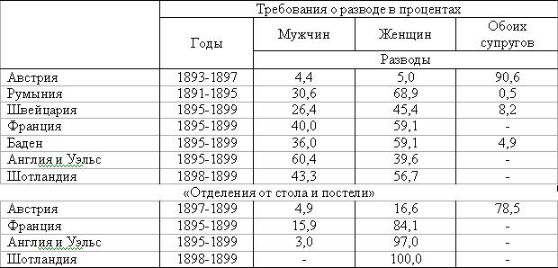 И в других странах, насколько можно судить по имеющимся данным, требования развода большею частью исходят от женщины.