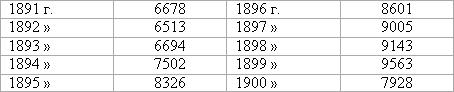 В Германии число вошедших в силу приговоров по бракоразводным делам с 1891 по 1900 год было следующее:
