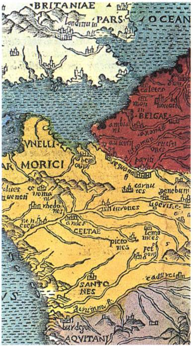 Карта Галлии из Записок Юлия Цезаря (издание 1513 г.).