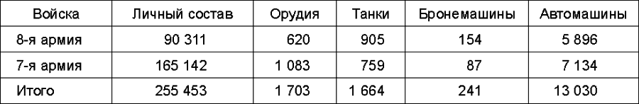 Таблица 7. Численность и вооружение войск на 3 октября 1939 г.