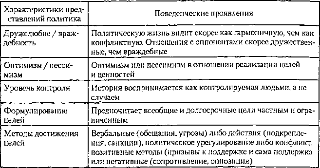 Изучение реальных участников политического процесса, исполняющих различные роли в системе, привело сторонников ролевой теории политики к убеждению, что для их понимания необходимо углубление именно психологического анализа поведения. Так, работа Н. Ная и С. Вербы показала, что разные формы политических ролей привлекают исполнителей с различным психологическим складом и разными ориентациями[444].