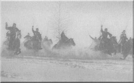 Население освобожденных деревень со слезами радости встречает своих освободителей – доблестных красных воинов.