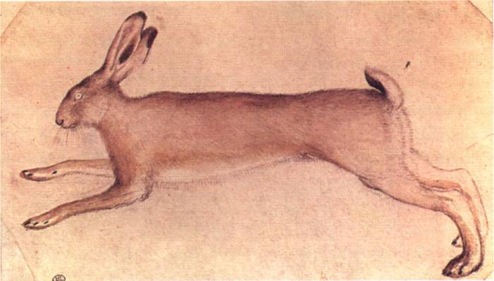 Заяц в движении. (Рисунок Пизанелло, хранится в Лувре.) Заяц также занимал важное место в кельтской символике животных и ассоциировался с богиней-покровительницей Британии Андрастой. Это животное, возможно, использовалось у кельтов-британцев для забавы, поскольку существовал религиозный запрет на использование его в пищу. Однако этот запрет отменялся в праздник «Белтене», когда охота на зайцев становилась одним из ритуалов.