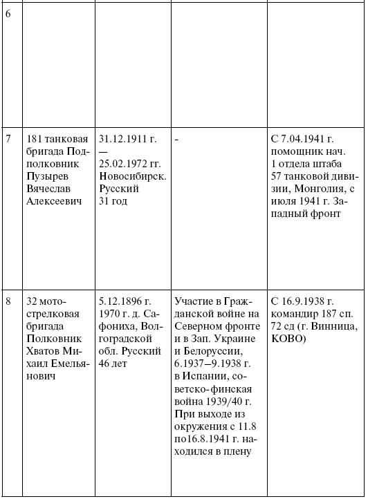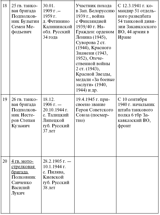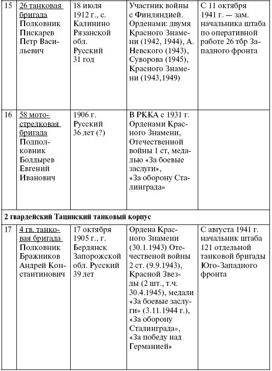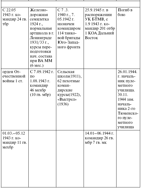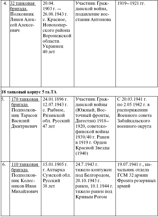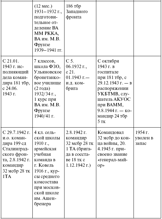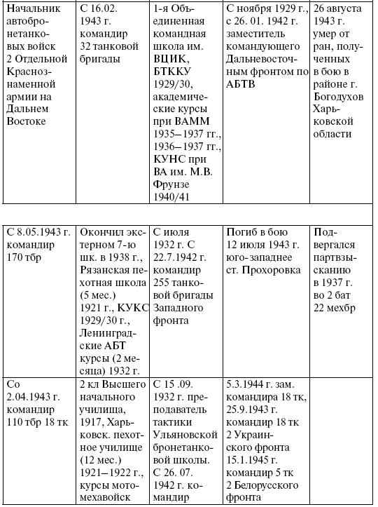 Краткие биографические данные командиров танковых, механизированных и мотострелковых бригад, участвовавших в Прохоровском сражении