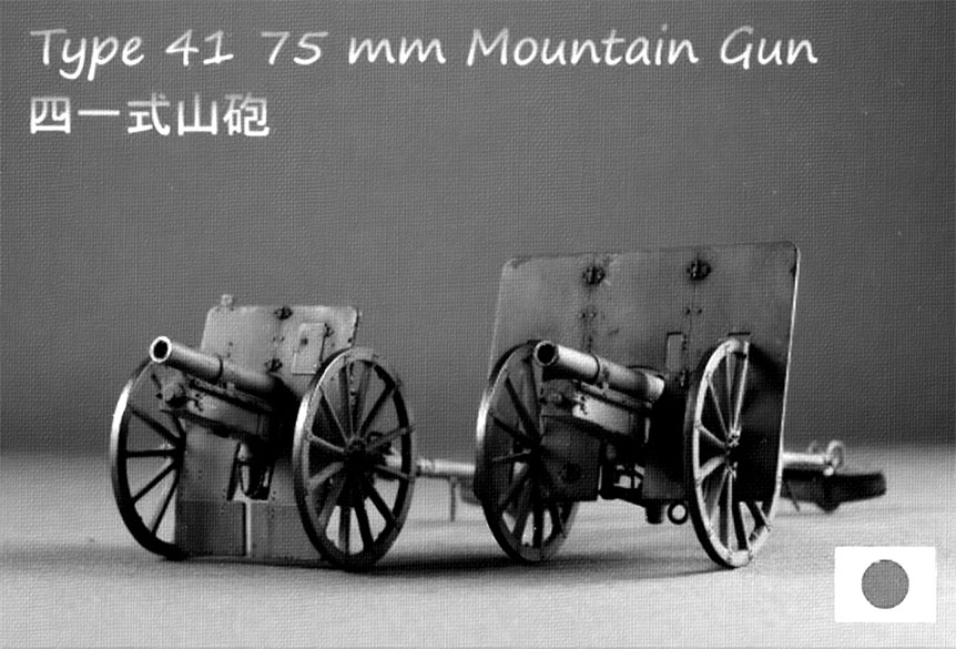 Артиллерийская часть отряда располагала двумя горными 3-дюймовыми (75-мм) пушками тип 41 (образца 1908 года) и 70-мм горной гаубицей образца 1932 года (бомбометом) на конной тяге.[117]