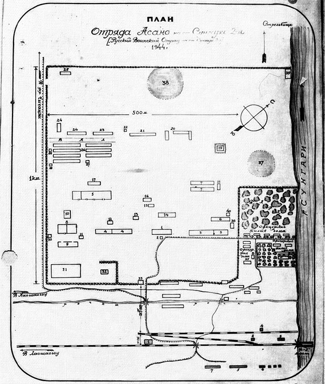 Летом 1940 года на западной линии СМЖД (станция Хакэ в 30 км от Хайлара) и в Трехречье (поселок Драгоценка) под эгидой Киовакай прошли военно-учебные сборы, в которых приняли участие молодые эмигранты практически из всех русских населенных пунктов западной линии. Занятия на сборах вели японские офицеры и резервисты из отряда Асано. В качестве наблюдателей на сборах присутствовали командующий 10-м военным округом Маньчжоу-го генерал-лейтенант У. Гармаев, а также представители Военной миссии и Бюро эмигрантов (начальник Захинганского БРЭМ – генерал Бакшеев).[162] В дальнейшем многие из молодых людей, проходивших военные сборы на станции Хакэ и в поселке Драгоценка, отправились служить в отряд Асано.
