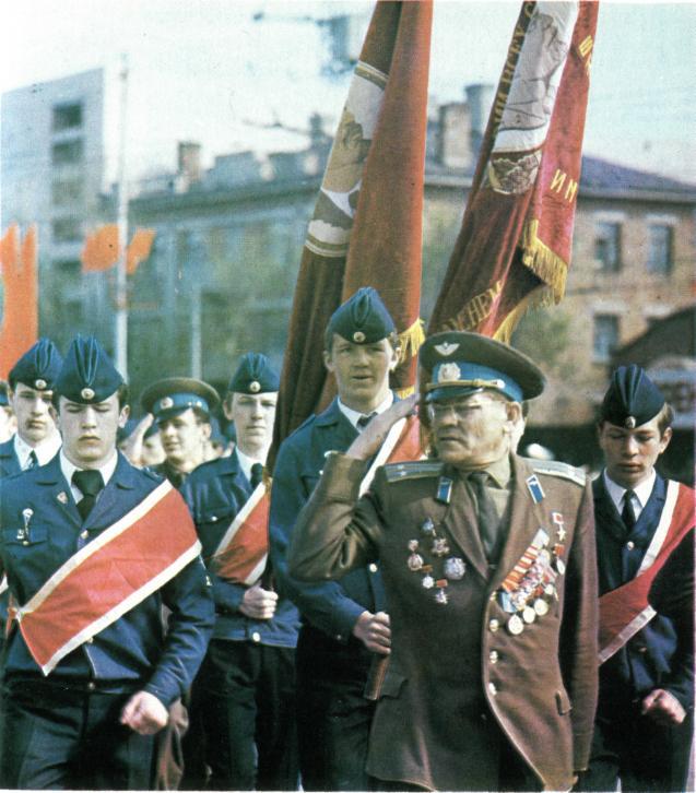 В родном училище. Я. Н. Масликов (слева), обучавший Ю. А. Гагарина. Октябрь 1962 г.
