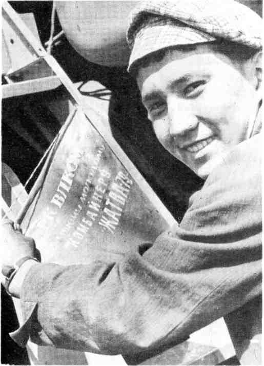 Обладатель вымпела имени Ю. А. Гагарина молодой механизатор из колхоза «Победа» Акбулакского района Ерсаин Испулаев.