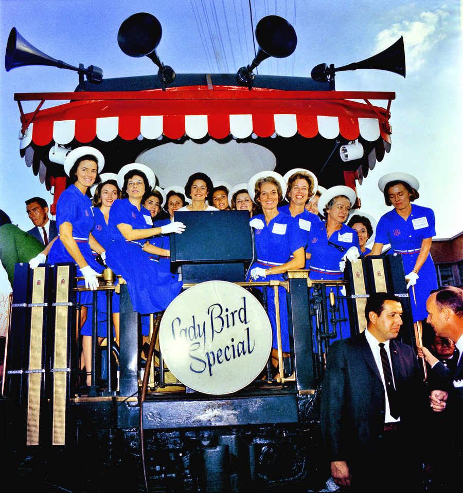 Леди Берд Джонсон, которая была настолько застенчива, что брала уроки публичных выступлений, пока ее муж заседал в Конгрессе, стала первой женой президента, проведшей самостоятельную политическую кампанию и посетившей восемь южных штатов на своем поезде в 1964 году.