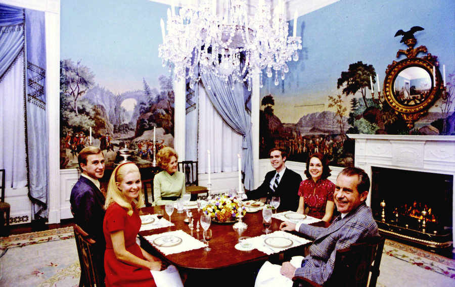 Тихий семейный ужин четы Никсонов в семейной столовой на втором этаже в ночь выборов 1972 года.