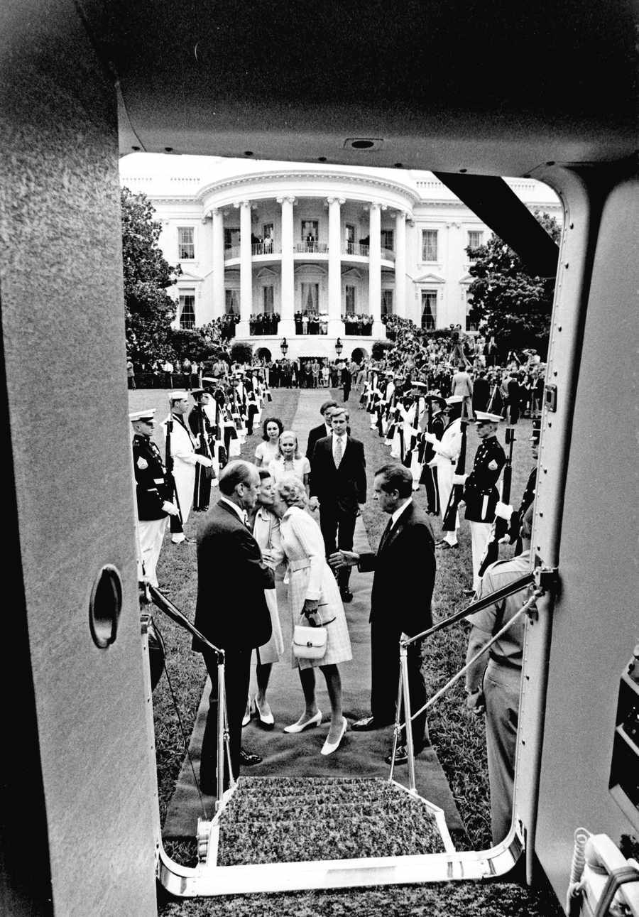 Пэт приветственно целует Бетти Форд, внезапно пришедшей ей на смену в качестве первой леди, после ухода президента Никсона в отставку. «Святые небеса, они даже расстелили для нас красную ковровую дорожку, это просто нечто, — произнесла Пэт с горечью, обращаясь к Бетти. — Вам еще столько раз предстоит их увидеть… что вы их просто возненавидите».