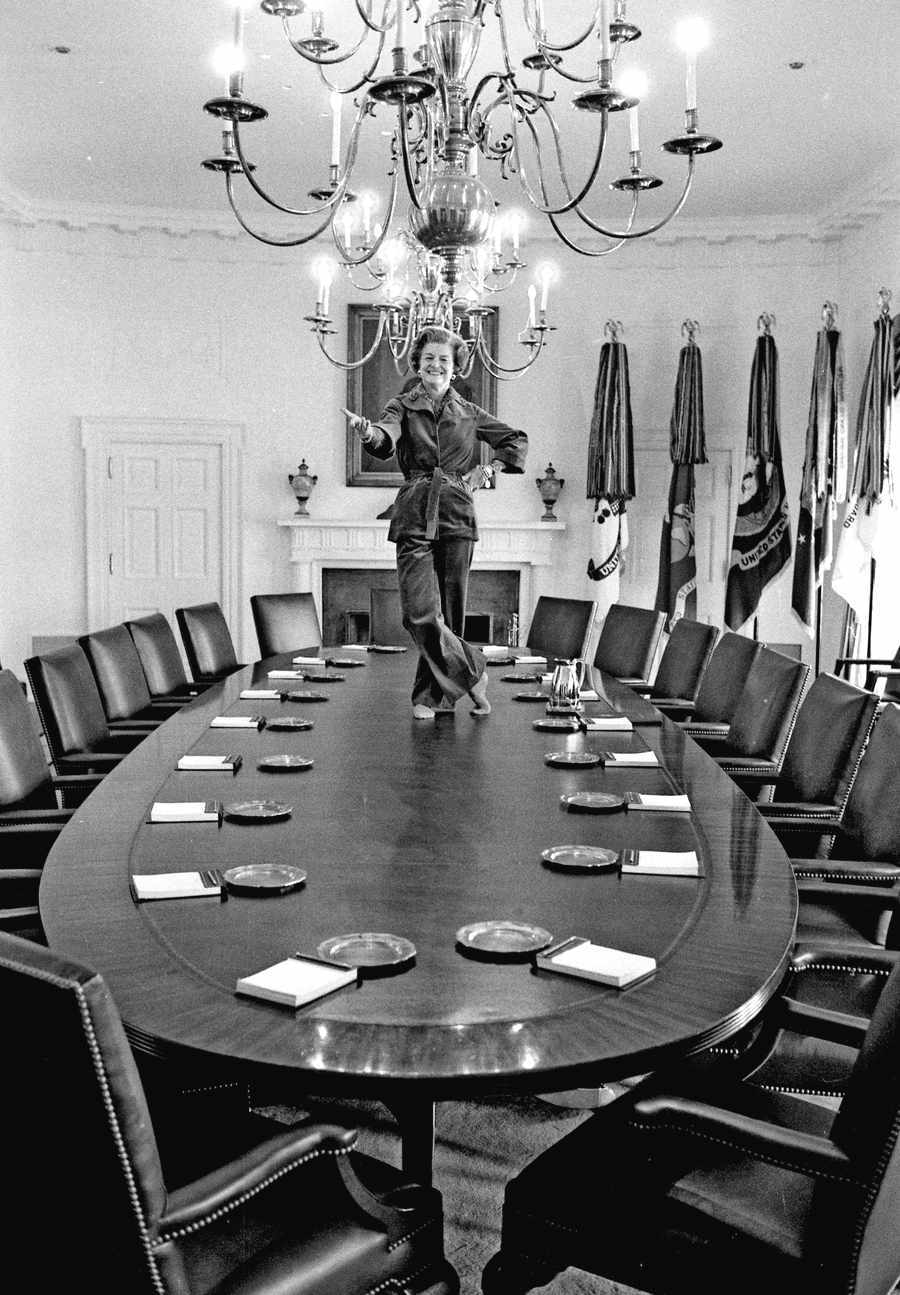 За день до того, как Бетти Форд покинула Белый дом, она проделала один из обучающих приемов танцовщицы Марты Грэм, запрыгнув на стол в кабинете, места за которым предназначались исключительно для мужчин. Друг семьи рассказал позже, президент Форд «рухнул со стула», увидев впервые это фото.