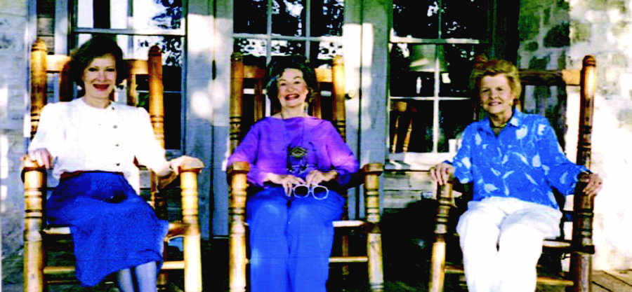 Розалин Картер, Леди Берд Джонсон и Бетти Форд в креслах-качалках на ранчо Леди Берд в Техасе в 1987 году. Неожиданная картина из трех бывших первых леди не оставляла равнодушным ни одного из туристов, проезжавших мимо. «Я никогда в жизни не видел столько объективов камер. Это было похоже на море проплывающих окон, заполненных черными кругами», — рассказывал помощник Леди Берд. Леди Берд и Бетти Форд были настолько близки, что маленькую фотографию Бетти в рамке Леди Берд держала в своей спальне до самой смерти.