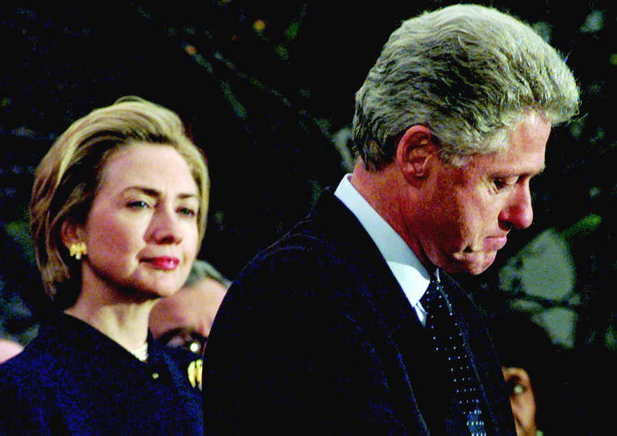 Бывший главный дворецкий Белого дома Джордж Ханни вспоминает, насколько Хиллари Клинтон замкнулась в себе, когда их семью поглотил скандал с Моникой Левински. Здесь Хиллари наблюдает за выступлением мужа перед Палатой представителей в день голосования по импичменту, выдвинутому в связи с обвинениями в лжесвидетельстве и препятствовании правосудию.