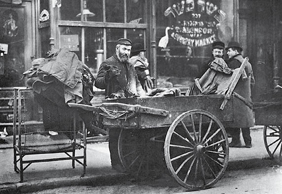 Но испытания, выпадавшие на долю вырвавшихся на свободу обитателей черты оседлости, не заканчивались пересечением Атлантики. Земля, на которую они ступали, вовсе не была усеяна золотом. Прибывшим практически из другого мира переселенцам нелегко было устроить свои многодетные семьи, найти работу. Уровень образования и квалификации, жизненный опыт – все это было у иммигрантов иным, создавало для них бесчисленные трудности. В поисках работы, не требующей специальной квалификации, многие пытались освоить занятия, знакомые им по прошлой жизни, например работу торговцев вразнос. Но и в этом случае необходимо было привыкать к более тяжелым условиям, к самой высокой в мире степени интенсификации труда, с которой переселенцы никогда прежде не сталкивались. Мемуары, литературные очерки повествуют об этом изнурительном деле, о том, насколько непроста была работа разносчиков или педдлеров (peddlers), постоянно рисковавших повредить спину бесконечным тасканием тяжестей.