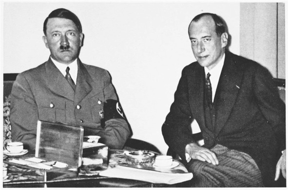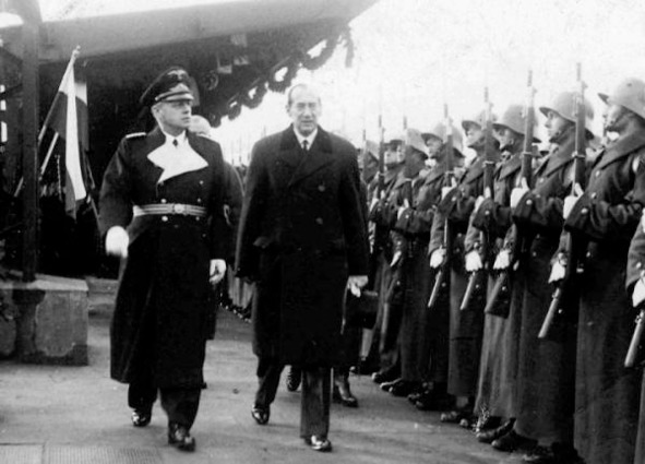 Приезд И. Риббентропа в Варшаву в январе 1939 г. Слева И. Риббентроп, справа глава польского МИД Ю. Бек