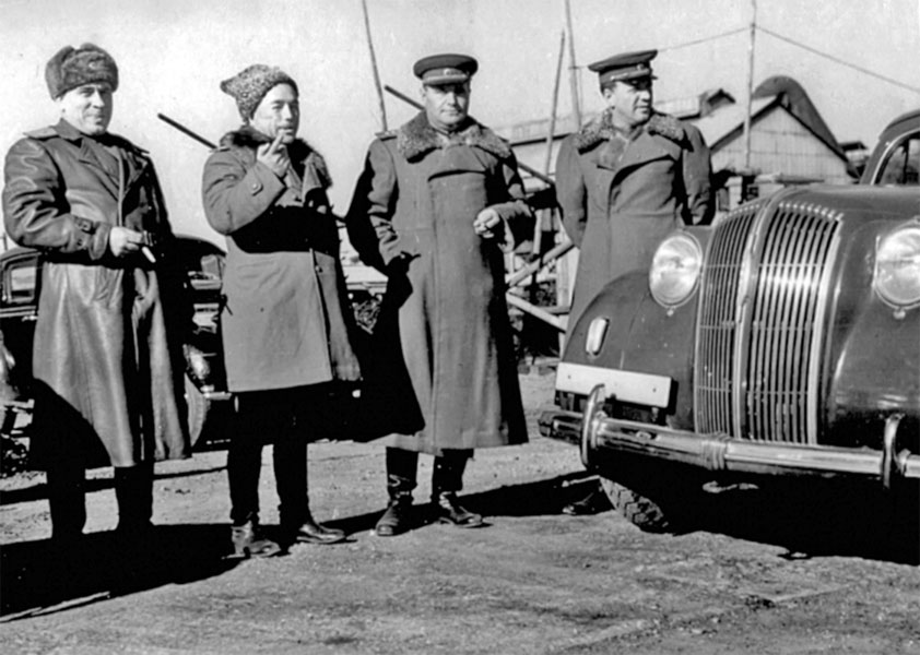 Первый справа – член Военного совета 6-й гвардейской танковой армии генерал-лейтенант танковых войск Г. Л. Туманян; второй справа – командующий 6-й гвардейской танковой армией генерал-полковник танковых войск А. Г. Кравченко. 1945 г.
