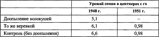 По сравнению с контролем «доопыление» приводит не к увеличению урожая, а к снижению в 1,6 ц с га (для волокуш) и 0,5 ц для веревки.