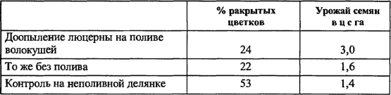 Сам автор справедливо пишет, что увеличение урожая на поливе произошло, очевидно, за счет полива. Что же касается неполитых делянок, то небольшая прибавка урожая (0,2 ц на га) никак не может быть отнесена на долю дополнительного опыления, так как доопыленные делянки показывают, в среднем, всего примерно 3% открытых цветков, т.е. в 2,3 раза меньше, чем контрольные (53). Несомненно, что разница объясняется, прежде всего, той неоднородностью поля, которая является обычным явлением, легко приводящим к неправильным выводам, но, может быть, имело место и вредное влияние волокуши. Сам автор пишет (с. 44), что работа волокуши отгоняла пчел с делянки.