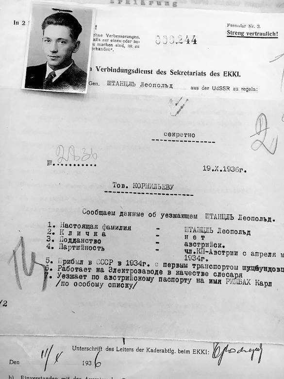 Из всей четвёрки «Кофе» он обладал, наверное, самым богатым военным опытом. Еще в 1922–1928 гг. Леопольд служил добровольцем в горной артиллерии австрийской правительственной армии. Правда, был уволен оттуда как «политически ненадежный»[556] (в материалах Коминтерна уточняется, что в то время в австрийской армии официально существовал институт доверенных лиц, которые выбрались солдатами, и, очевидно, Штанцль, будучи избранным в такие «трибуны», превысил свои полномочия). На «гражданке» он работал слесарем на всё том же заводе Вагнера, на ткацкой фабрике в Вене, а также помощником машиниста на железной дороге (туда, очевидно, устроился через брата Ганса). Но в тот же год, когда он был уволен из правительственной армии, он поступил и в «Шуцбунд». В 1934 г. Штанцль – активный участник февральского восстания, по ходу которого был командиром отряда в Вене[557], после чего и оказывается в СССР.
