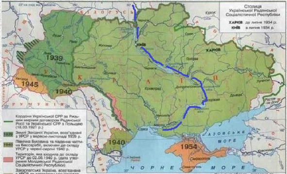 Рубежи обороны КОВО (до р. Днепр включительно). Синим, обозначен крайний рубеж обороны.