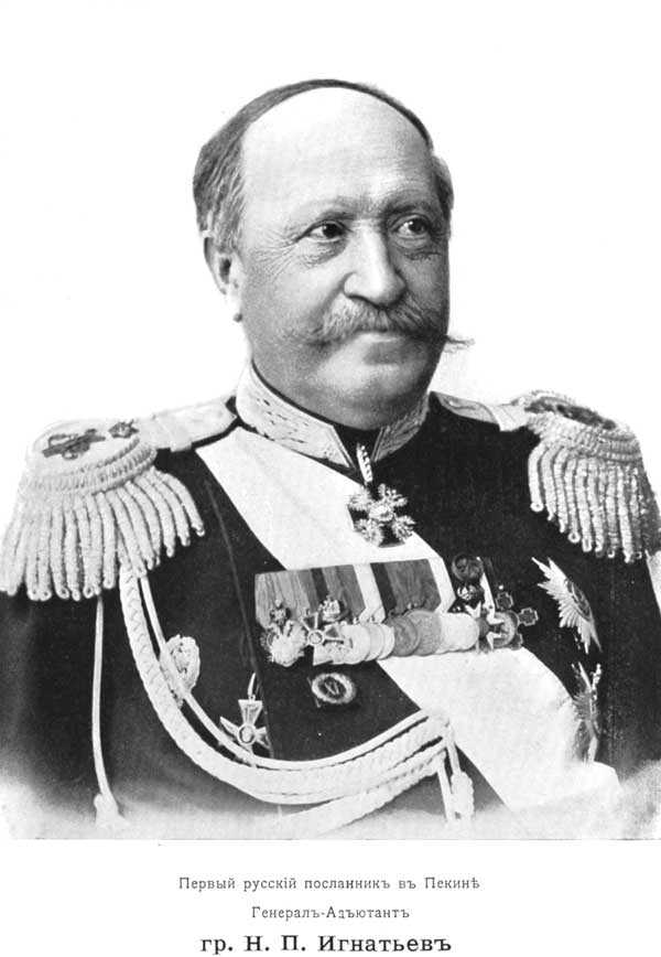 Перед отправкой в Китай Игнатьева повысили до генерала. Ему было поручено убедить китайское правительство ратифицировать Айгунский договор, заключенный 16 мая 1858 года, как следует из названия договора, в городе Айгун. По этому договору русско-китайскую границу провели по реке Амур. Что интересно, составил этот договор Рафаил Александрович Черносвитов, человек удивительной судьбы. В молодости он был членом революционного кружка «петрашевцев», отсидел в крепости в заключении несколько лет, а после освобождения уехал в Сибирь, где стал известным золотопромышленником и близким другом графа Николая Николаевича Муравьева, генерал-губернатора Восточной Сибири.