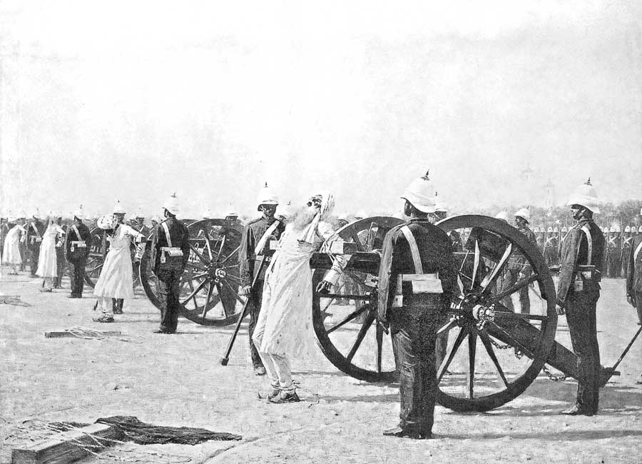Очевидно, продолжать спор было бесполезно. Сэр Ричард Темпль, известный деятель и знаток Индии, сказал мне, что напрасно я придал удрученный вид одному из привязанных к жерлу пушки.
