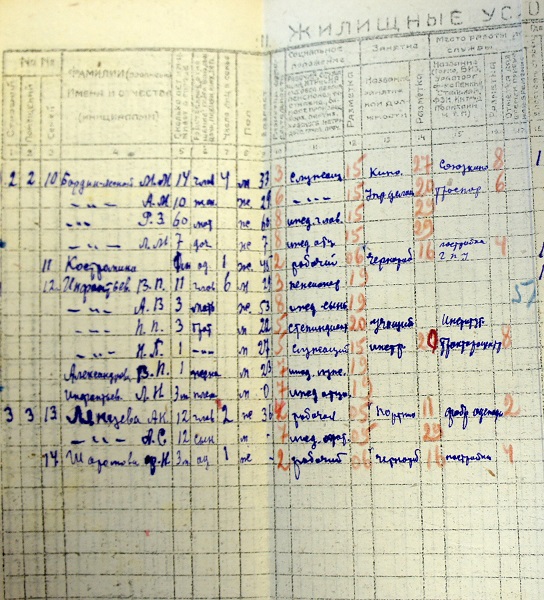 На фотографии под №13 зарегистрированы мать и сын Ляйцевы. Переписчик, кстати, поработал довольно небрежно и перепутал инициалы Ляйцева-сына, неверно указав «А.С.» вместо «Н.С.» Как уже упоминалось ранее, для советской бюрократии предвоенной эпохи такого рода неточности представляли собой явление вполне обыденное, образованных людей в административном аппарате тогда было очень немного.