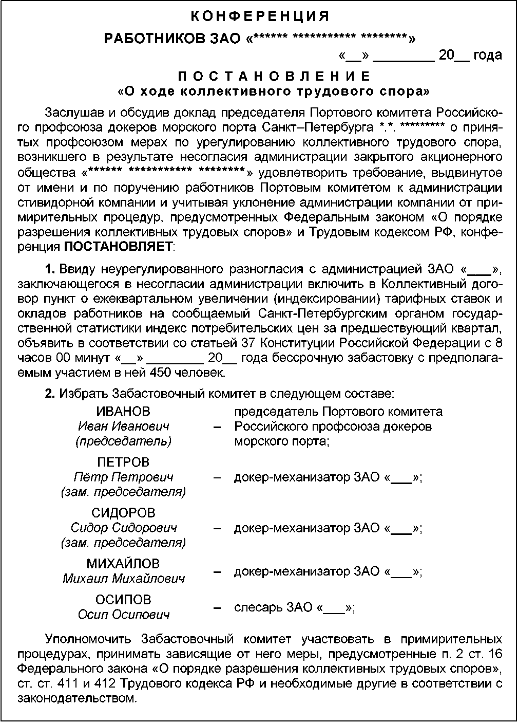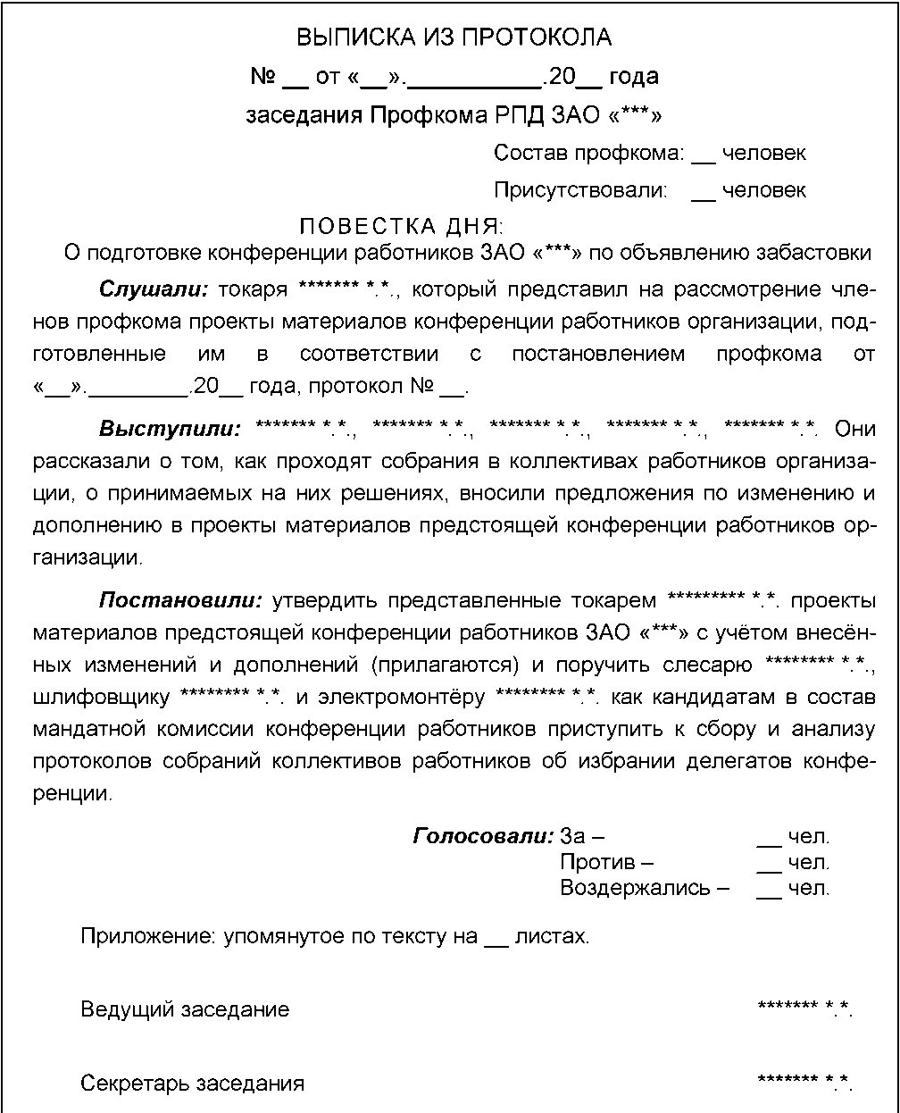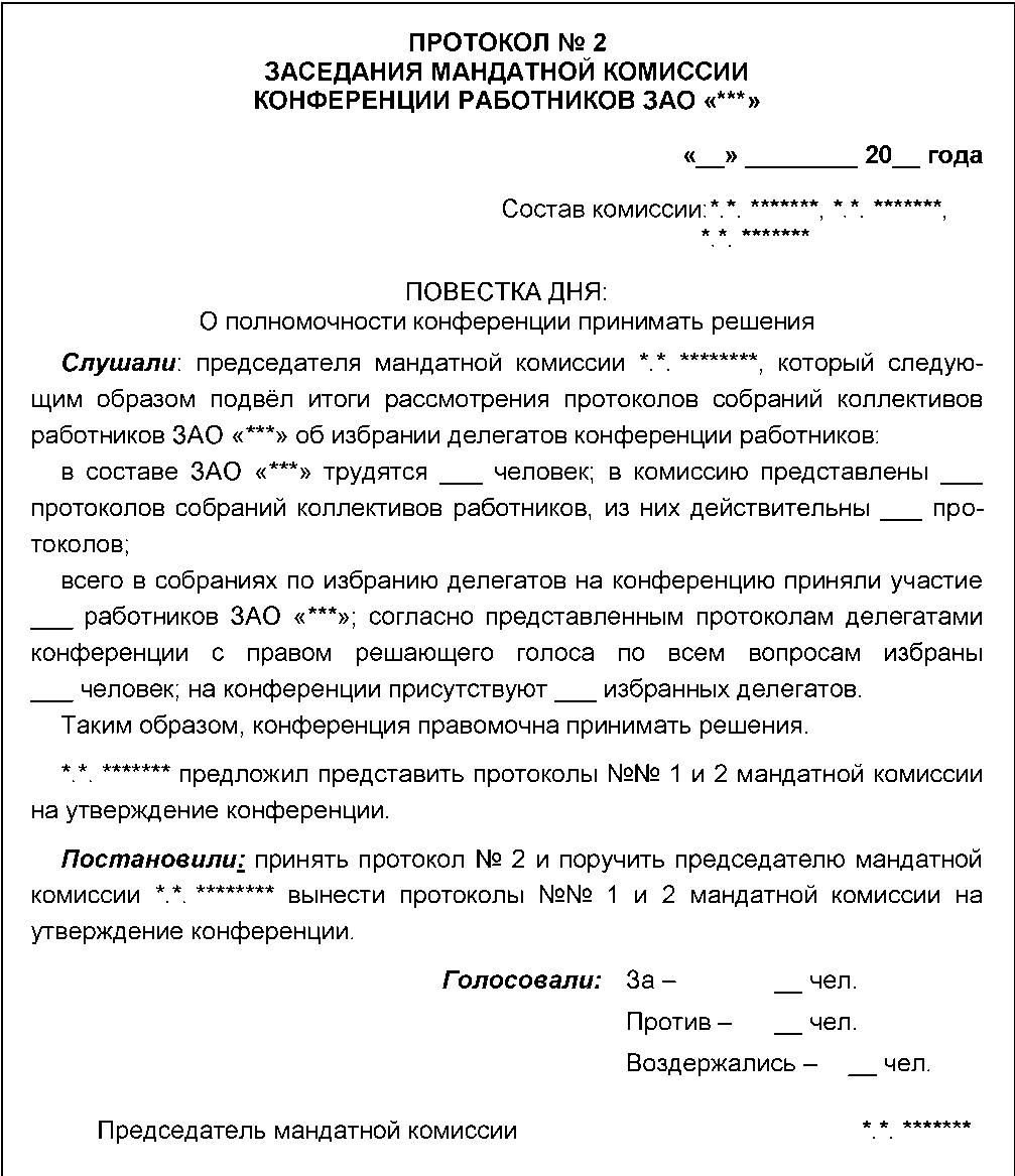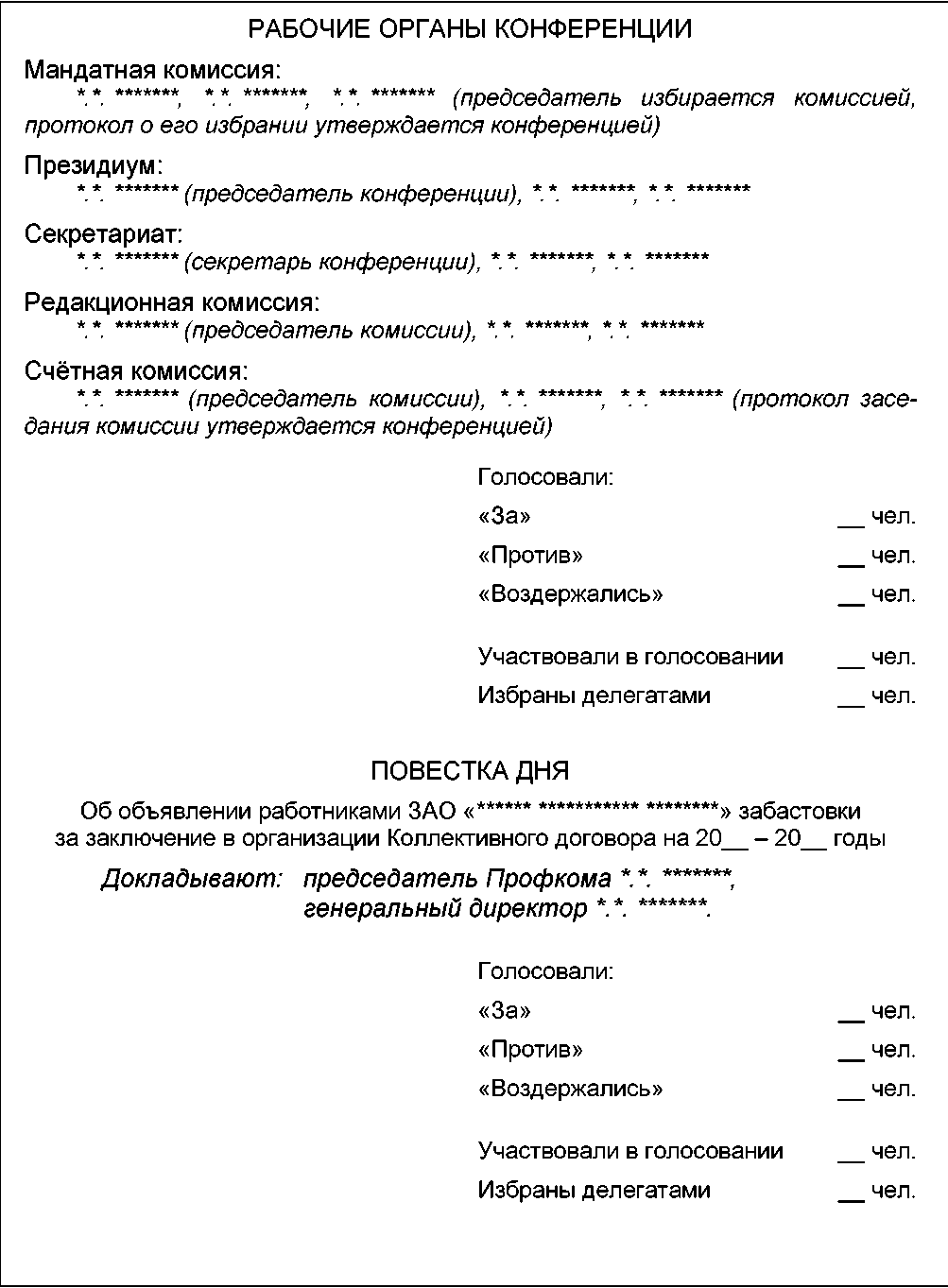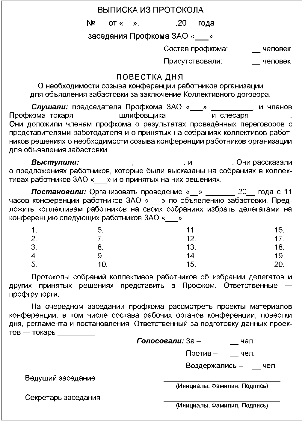 Проект Протокола Собрания коллектива работников, принимающего решение о необходимости проведения конференции для объявления забастовки