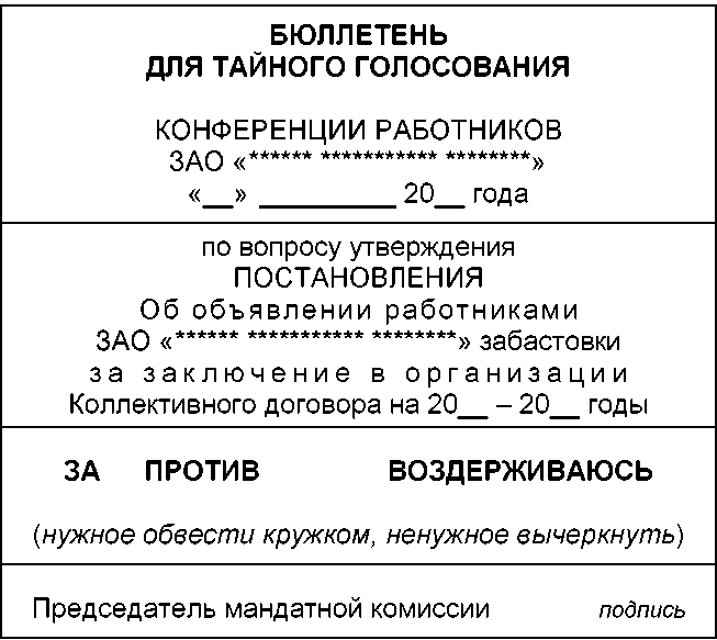 проект рабочих материалов для ведения конференции работников об объявлении забастовки