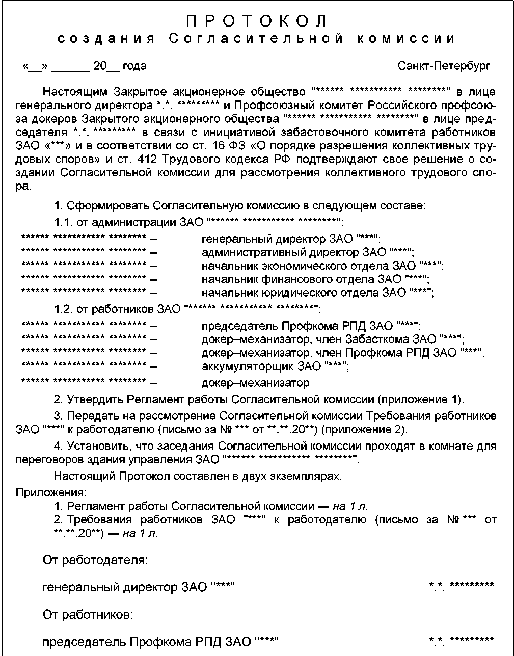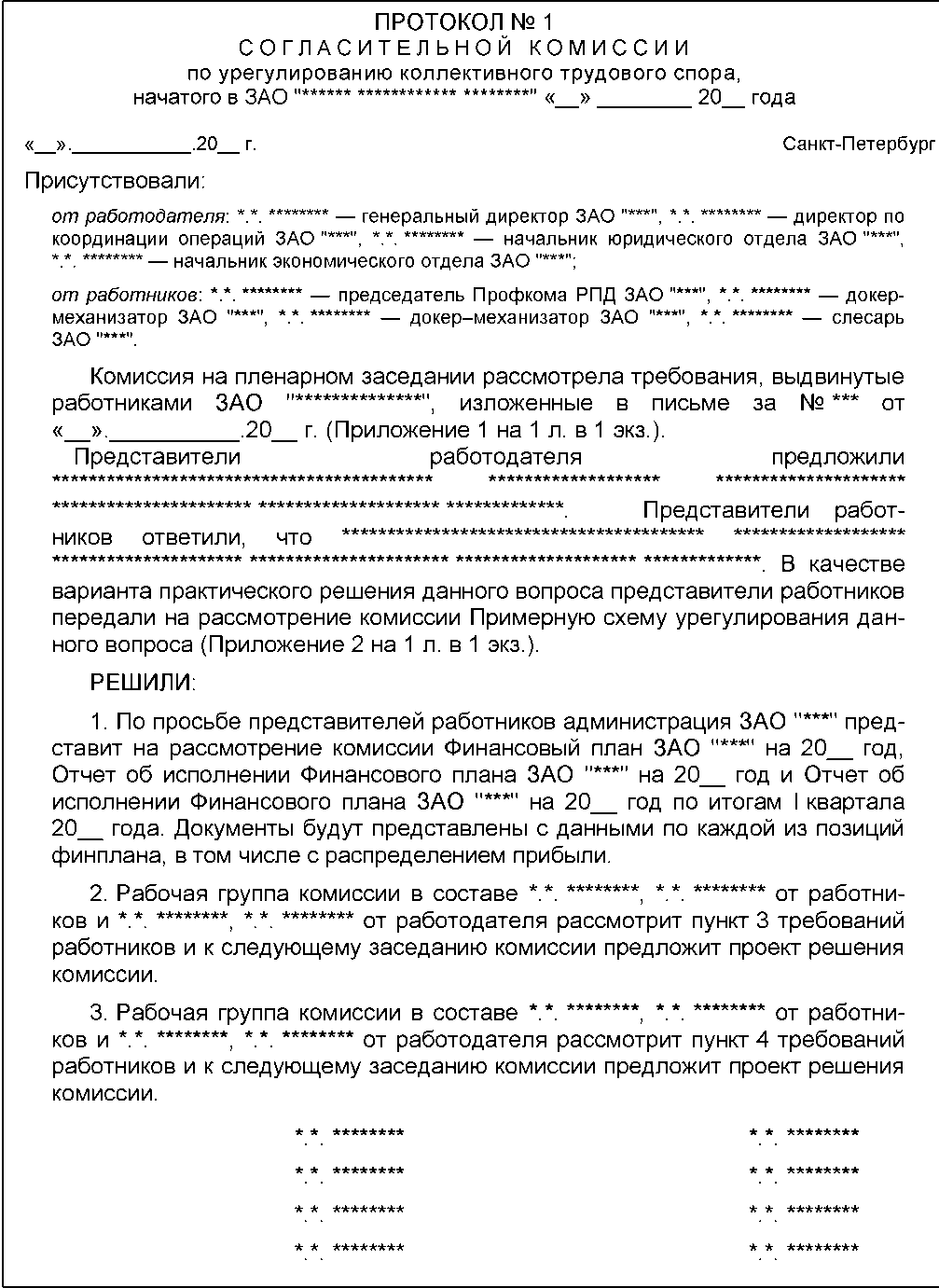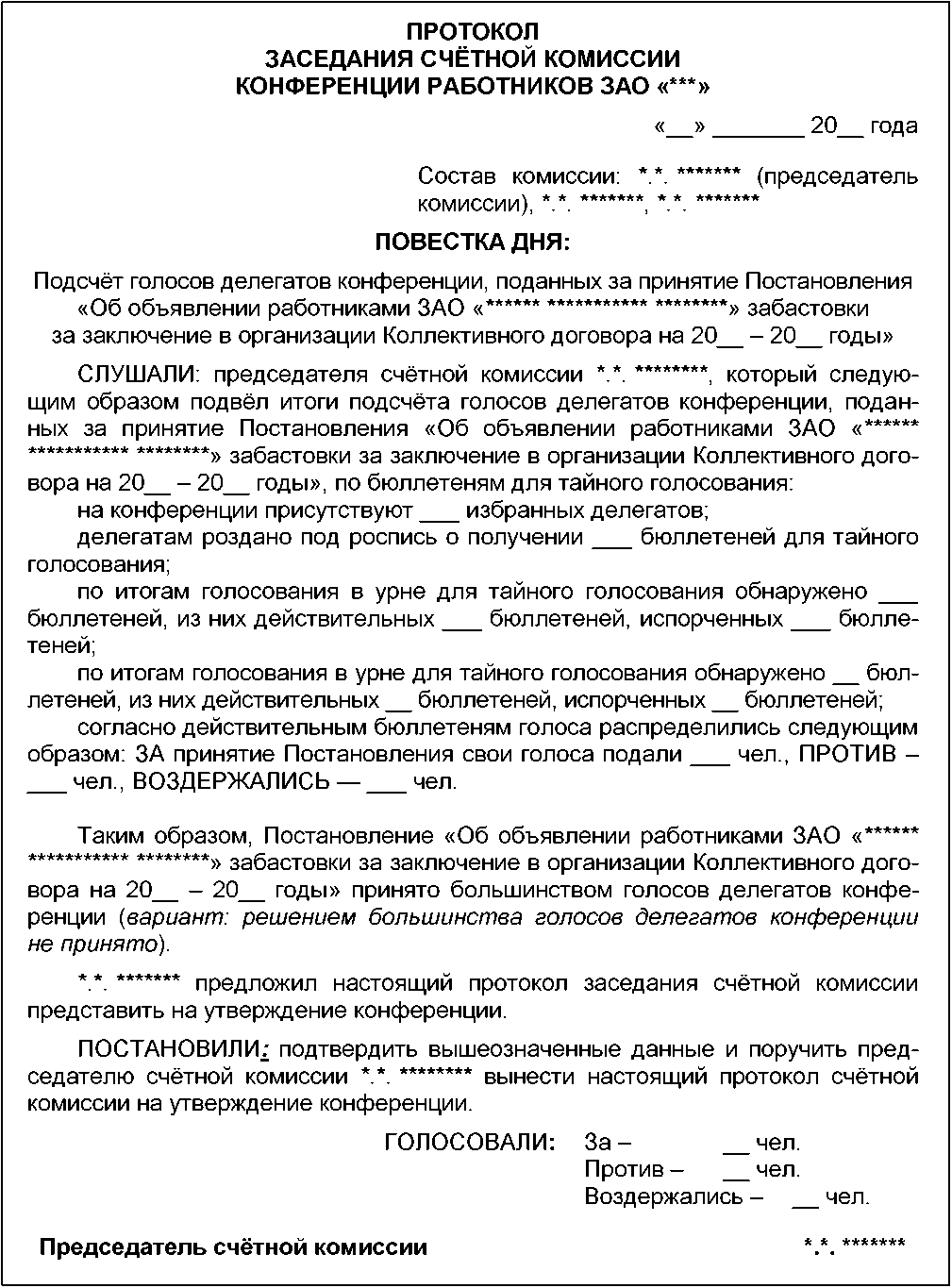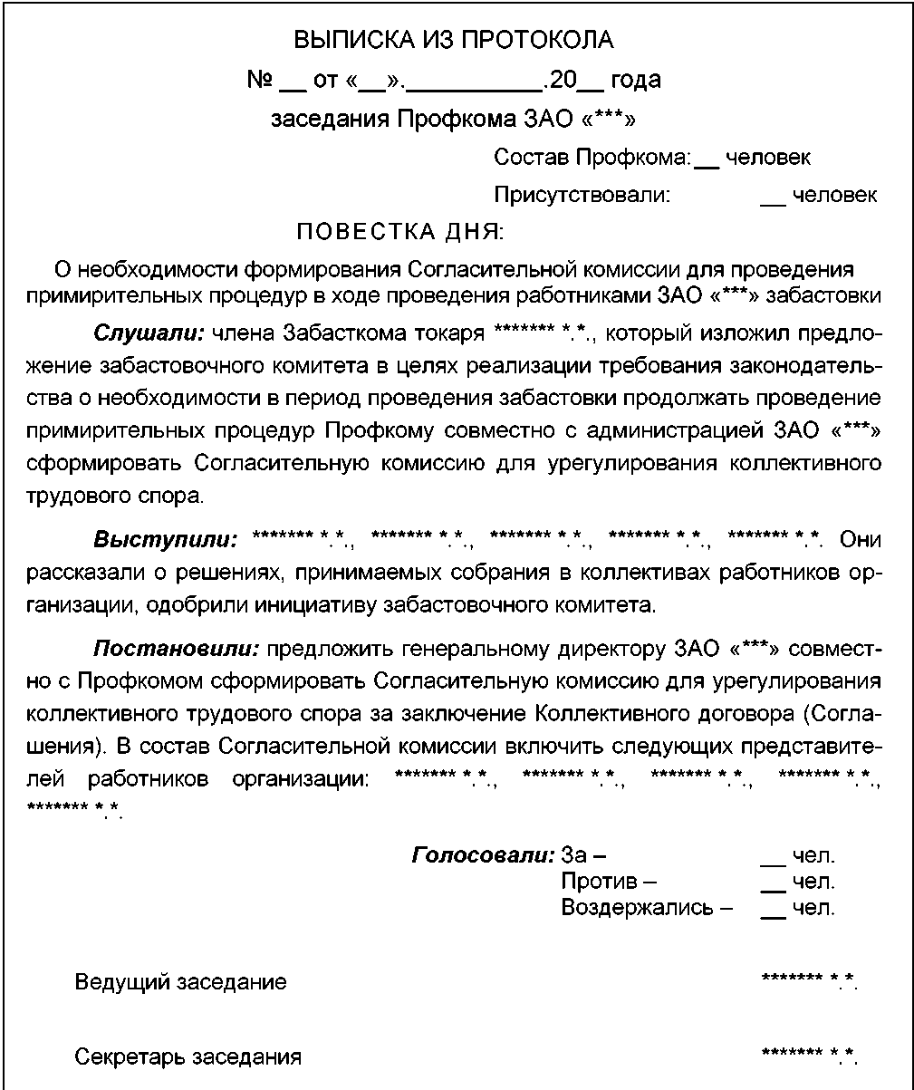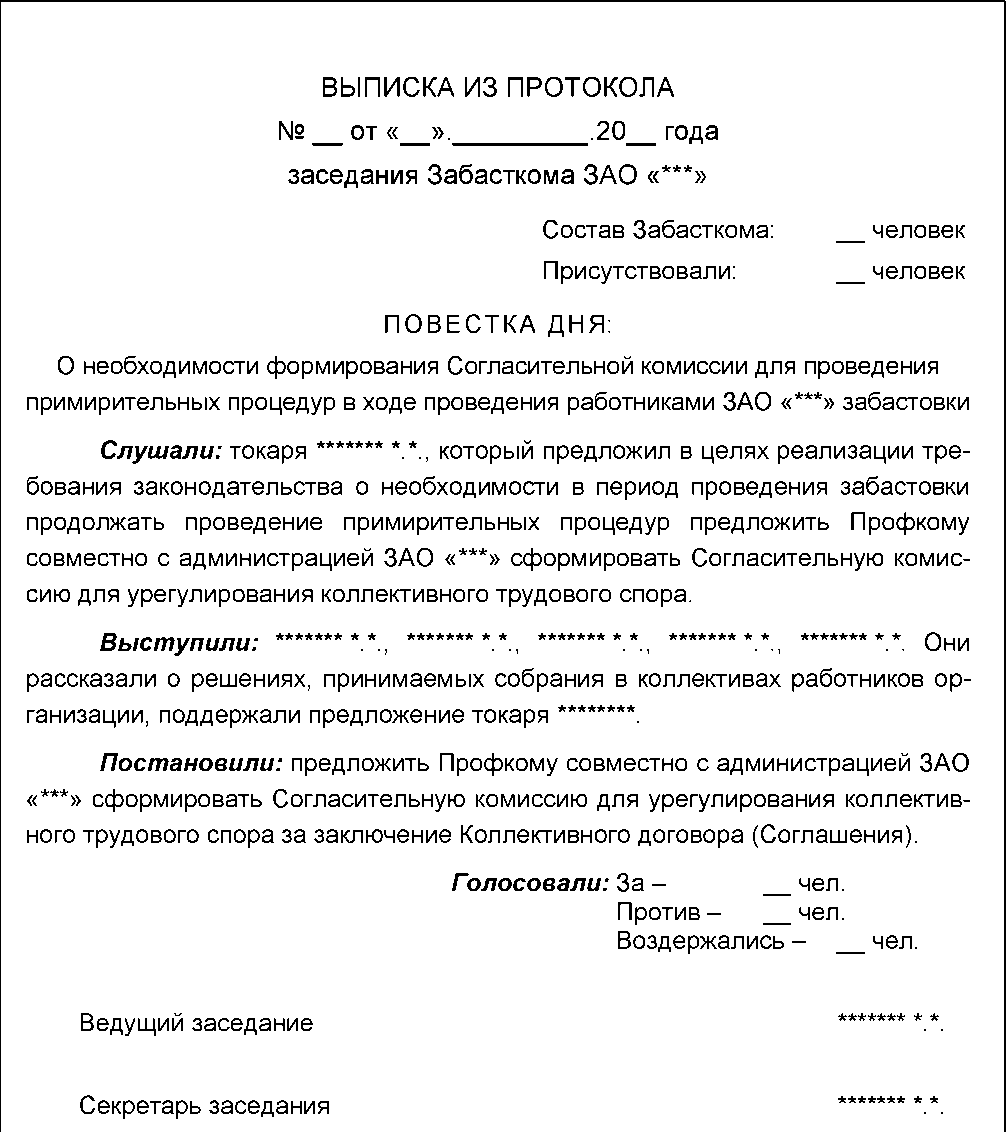 Проект Протокола Собрания коллектива работников, проводимого в период проведения забастовки