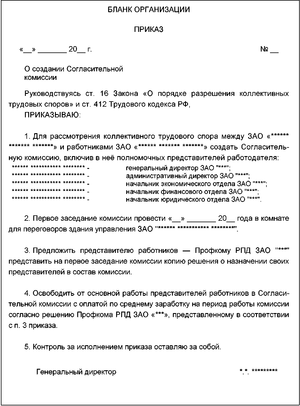 Проект Письма Профкома руководителю организации с предложением приступить к формированию Согласительной комиссии