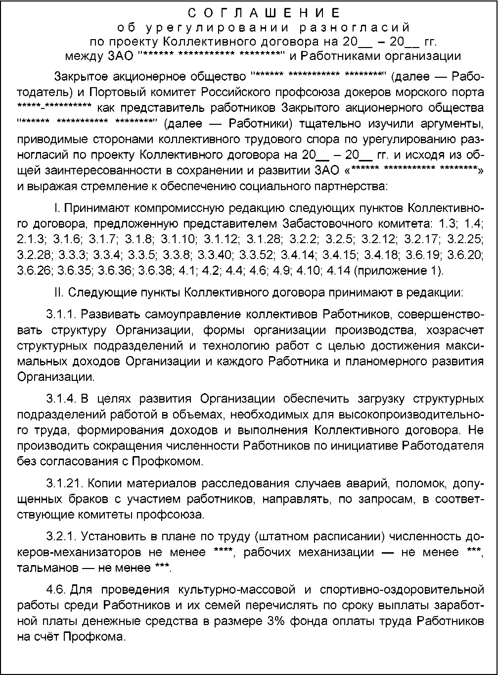 проект Соглашения, заключённого в ходе урегулирования коллективного трудового спора в Согласительной комиссии