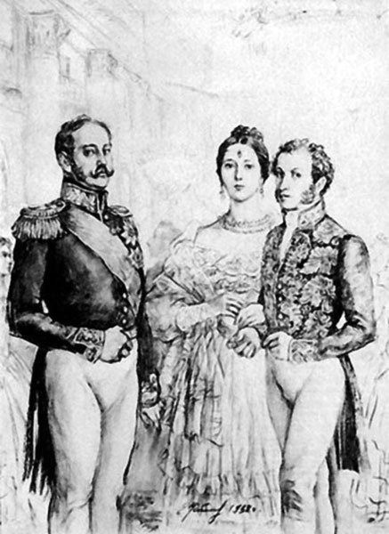 Итак, мы в 1837 году. Мама? вернулась с Кавказа, и мы уезжаем в Москву. Папа? должен был следовать за нами позднее. Бенкендорф был нашим провожатым. Из-за серьезной болезни, которою он захворал, он не мог сопровождать Папа? на Кавказ и был заменен Алексеем Орловым, как в коляске, так и во всех делах и поручениях.