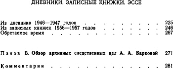 Дневник Барковой включает в себя философские размышления, суждения о прочитанных произведениях. Вместе с тем из него мы узнаем о бытовой стороне ее жизни, о людях, с которыми она встречалась, о творческих замыслах и многом другом.