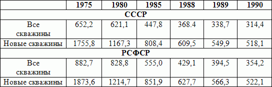 В значительной степени падение добычи нефти в СССР было связано с геологическими факторами. Наиболее продуктивные месторождения были перефорсированы. Ко второй половине 1980-х годов значительно снизилась продуктивность нефтяных скважин (см. табл. 6.2), увеличилось выбытие производственных мощностей. Новые месторождения были более сложными. Их освоение требовало значительно больших затрат в расчете на тонну добываемой нефти.