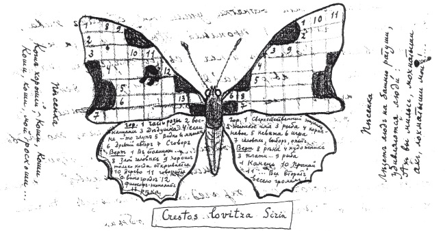 Хорошая бабочка? Я ровно два часа над нею бился – зато ладно вышло. Жизнь моя, если б ты знала, как кошки кричат на дворе! Одна кричит истошным басом – другая мучительно завывает. Будь у меня сейчас револьвер под рукой, я бы стал в них палить, честное слово! Меня эта бабочка здорово утомила. Жизнь моя, люблю вас. Читал нынче «Крейцерову сонату»: пошловатая брошюрка, – а когда-то она мне казалась очень «сильной». Немало еще интересного найдешь в боковых отделеньицах, жизнь моя милая. В.