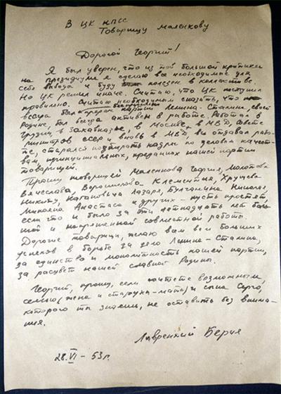Из бункера штаба Московского военного округа, где он оказался, Берия пишет письма своим бывшим соратникам. Он надеется на снисхождение, как те, кто писали в свое время письма ему, главе Грузии, наркому внутренних дел.