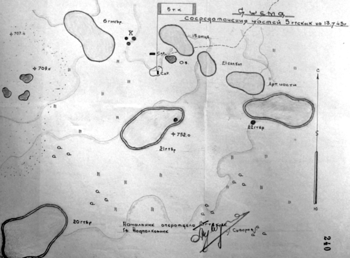 Схема 6. Сосредоточение частей 5-го гвардейского танкового корпуса на 13 июля 1945 г.