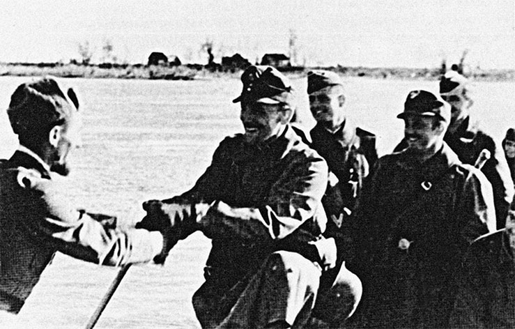 Кольцо вокруг «котла» прорвано: командир 3-й роты саперного батальона Зеела и командира 1-й роты саперного батальона Мюллер устанавливают связь между наступательными группами